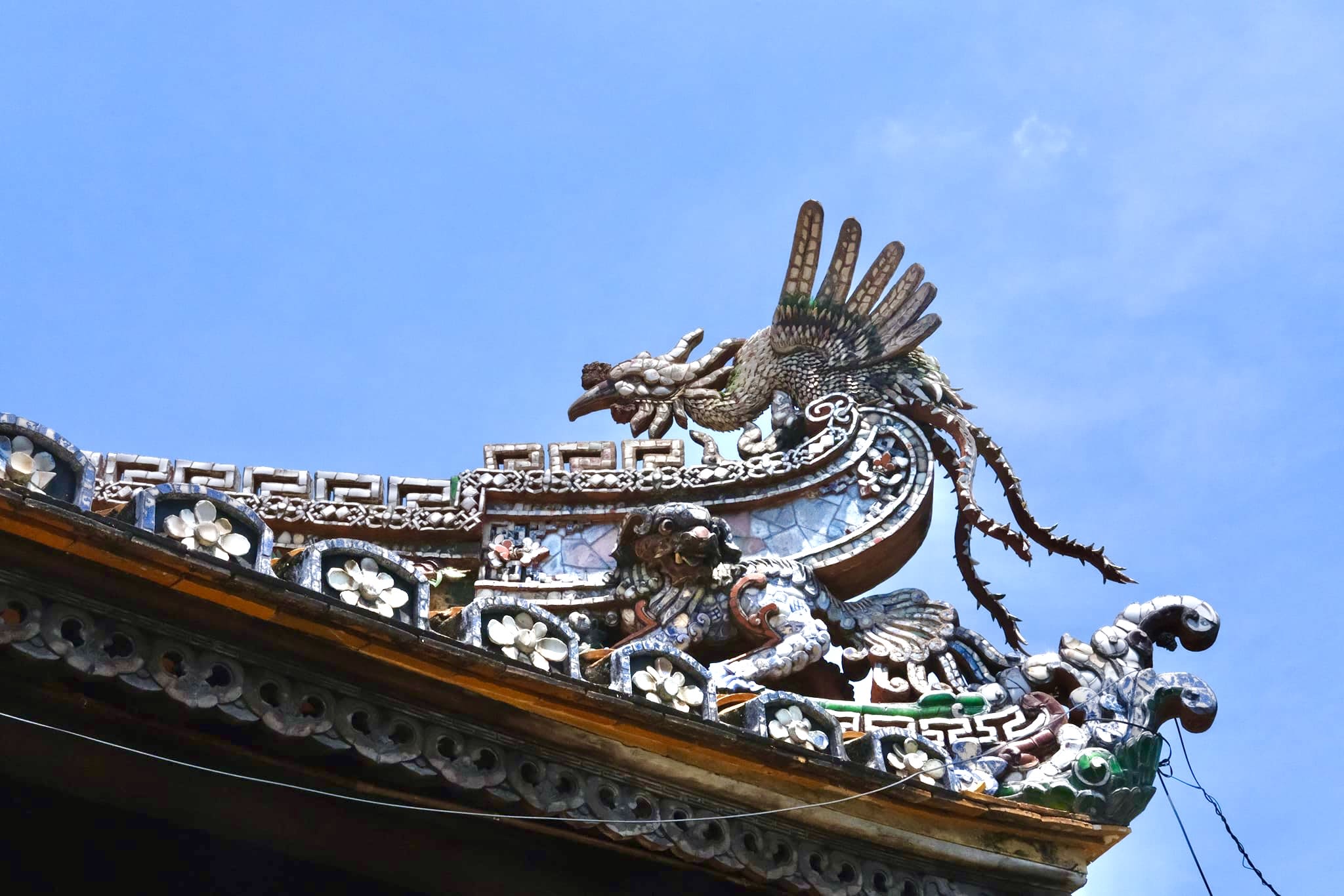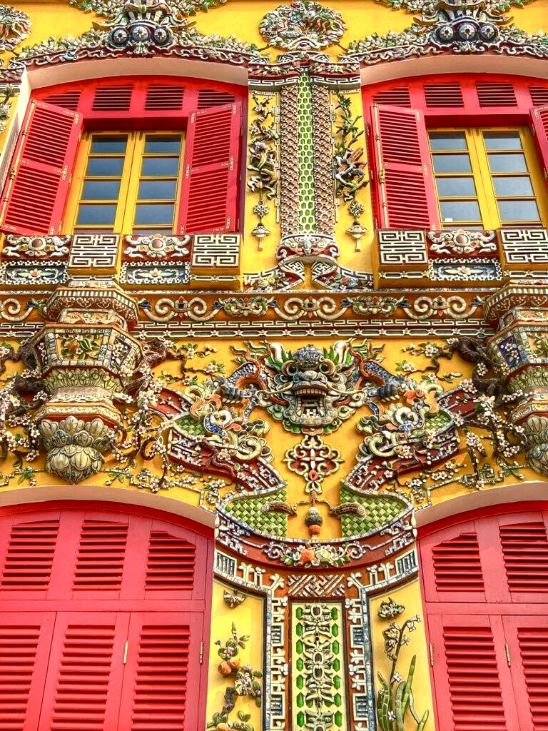 When exploring Hue, it became obvious that there are a number of animals that are frequently depicted in art and architecture. These creatures pop up everywhere. They are deeply symbolic in Vietnamese culture, signifying spiritual belief and royal tradition. There are four sacred animals: the dragon, unicorn, turtle, and phoenix. Alongside the four sacred animals, Vietnamese culture also recognizes elephants, chickens, roosters, birds, and horses as guardians, and they are highly honored in this culture. Each creature symbolizes a different element of the natural and spiritual world. Over time, these creatures have become central figures in mythology, protection, and power in Vietnam.